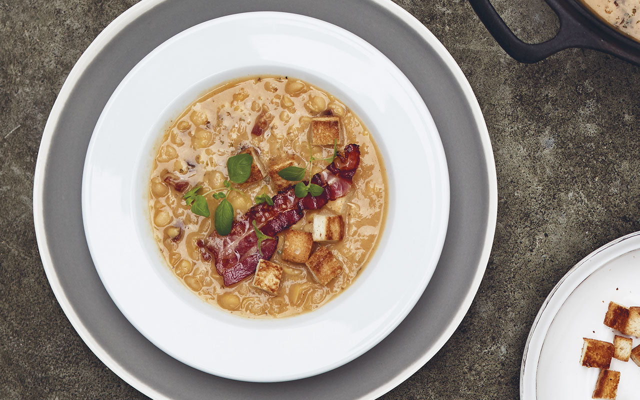 Jeden z našich rodinných pokladů. K hrachovce skoro vždycky jíme něco sladkého: koblihy, lívanečky anebo nic.